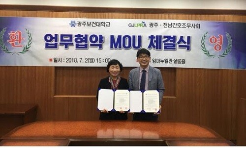 이번 협약으로 양 기관은 ▲방문간호 간호조무사 양성 교육과정 개발·운영 ▲광주전남지역 간호조무사의 업무능력 향상을 위한 교육사업 등 상호발전을 위한 협력 체제를 구축하는 데 합의했다.