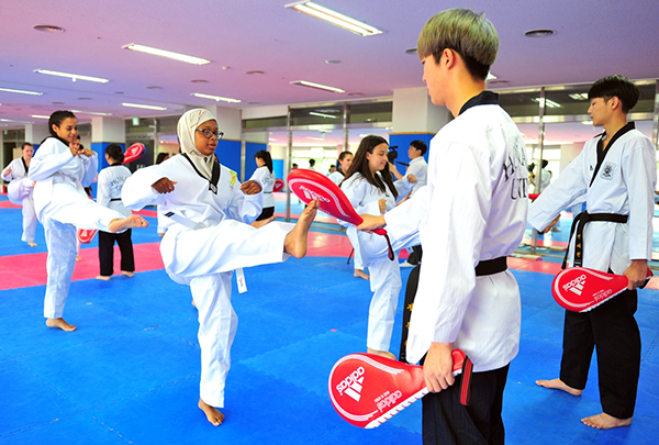 [대학저널 신효송 기자] 호남대학교(총장 서강석) 태권도경호학과(학과장 권순재)는 18일 호남대 문화체육관 태권도 전공장에서 ‘2018 미국 청소년 평화캠프’ 참가 청소년들을 대상으로 태권도체험 프로그램을 운영했다.