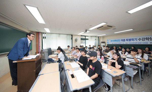 한편 전북대는 교육부 ACE사업의 일환으로 신입생 4학기제를 시행, 여름과 겨울 특별학기에도 실용영어나 수학, 물리, 화학 등의 기초과목 수업을 운영하고 있다. 올 여름방학에는 13과목 52분반에 1909명의 학생이 참여해 7월 13일부터 8월 14일까지 특별학기 수업이 이뤄진다.