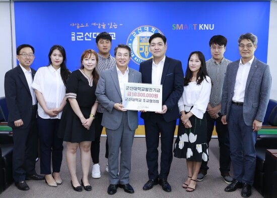 [대학저널 오혜민 기자] 군산대학교(총장 곽병선) 조교협의회가 8일 군산대 총장접견실에서 곽병선 총장에게 대학발전기금 1000만 원을 전달했다.