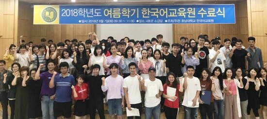 [대학저널 오혜민 기자] 호남대학교(총장 서강석) 국제교류본부 한국어교육원(원장 윤영)은 지난 7일 호남대 상하관 소강당에서 ‘2018학년도 여름학기 한국어교육원 수료식’을 열었다.