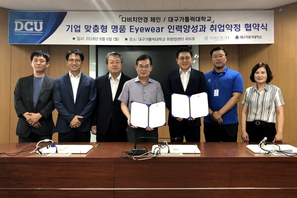 대구가톨릭대와 다비치안경은 산업체 수요를 반영해 사회맞춤형학과를 공동 개설하고 교육과정 및 교재 등을 공동으로 개발·운영하는 산학협력 체제를 구축하기로 했다.