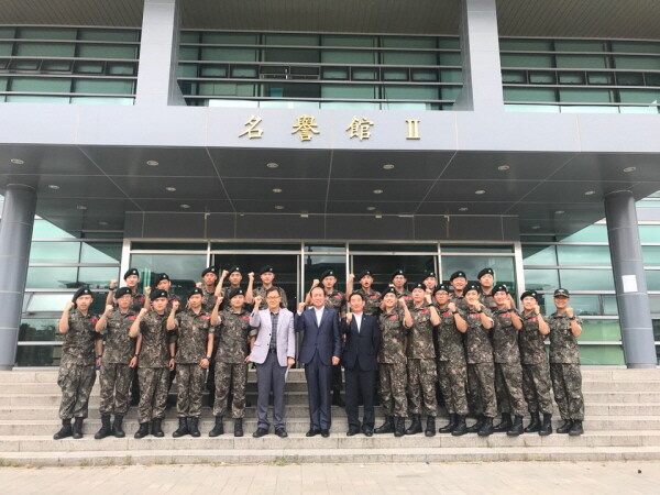 [대학저널 최진 기자] 가톨릭관동대학교(총장 천명훈) 신용선 대외협력부총장은 지난 7일 육군학생군사학교를 방문해 ‘2018 하계입영훈련’을 받고 있는 학군사관 후보생들을 격려했다.
