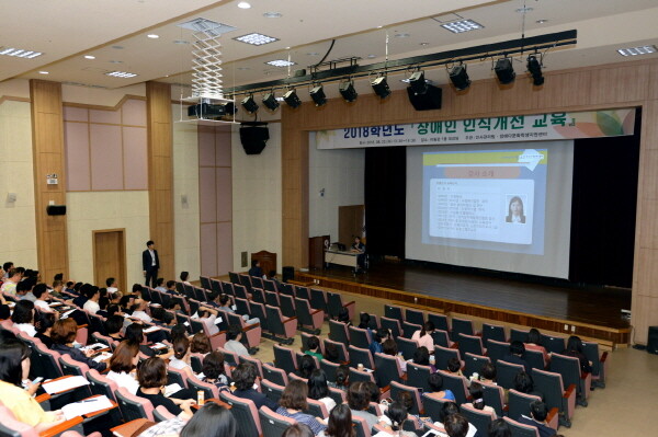 [대학저널 최진 기자] 수원여자대학교(총장 손경상) 장애다문화학생지원센터(센터장 소미현)가 지난 22일 미림관 대강당에서 전체 교직원 대상으로 2018년도 장애인 인식개선 교육을 개최했다.