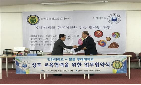 [대학저널 임지연 기자] 인하대학교 국어교육과 해외 봉사단(인솔교수 국어교육과 박덕유)인 ‘한글, 몽골을 품다’ 팀과 교육대학원·일반대학원 외국어로서의 한국어교육전공 해외세미나 팀 18명이 지난 14일부터 20일 몽골 울란바토르를 방문했다.