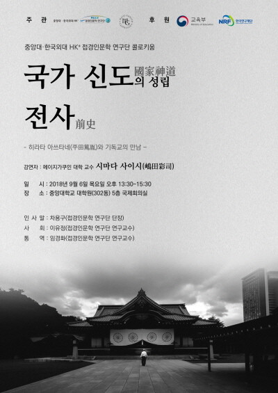 이번 콜로키움은 <국가 신도(神道)의 성립 전사(前史): 히라타 아쓰타네와 기독교의 만남>이란 주제로 시마다 사이시(嶋田彩司, 메이지가쿠인 대학) 교수가 강연할 예정이다. 시마다 교수는 일본 천황제의 버팀목인 ‘신도(神道)’가 ‘종교 위의 종교’로 자리매김한 과정과 신도가 유교, 불교, 기독교 등과 가진 사상적 교류에 대해 다년간 연구해 온 바 있다.