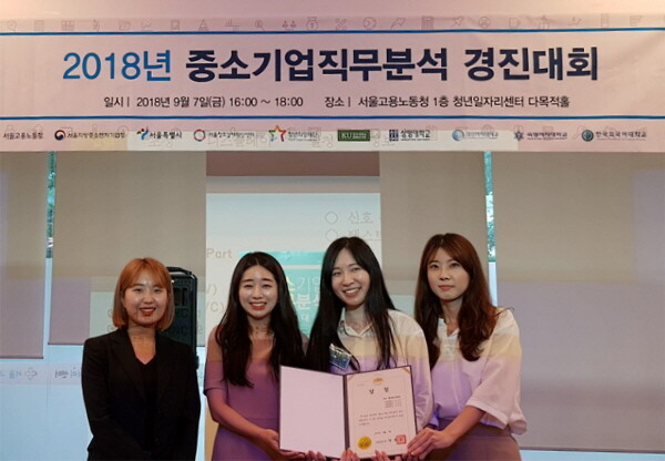 [대학저널 임지연 기자] 상명대학교(총장 백웅기) 경영학부 학생들이 2018년 중소기업 직무분석 경진대회에서 ‘서울특별시장상(최우수상)’을 수상했다.
