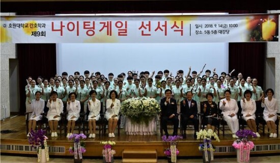 [대학저널 오혜민 기자] 호원대학교(총장 강희성) 간호학과가 14일 오전 10시 호원대 대강당에서 제9회 나이팅게일 선서식을 열었다.