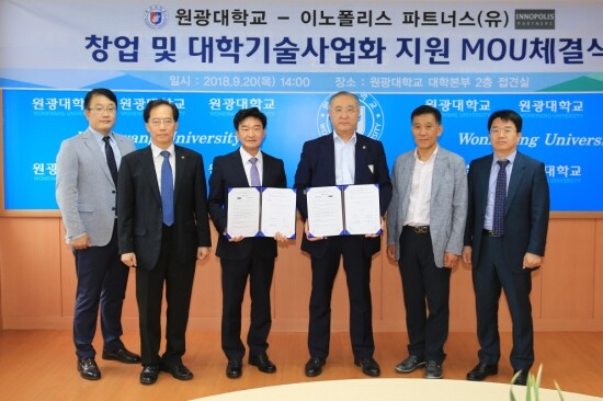 [대학저널 오혜민 기자] 국내 대학 중 유일하게 대학 내 1학과 1기업창업전략을 추진해온 원광대학교(총장 김도종)와 공공기술사업화 및 대학기술사업화 전문 창업투자회사 이노폴리스파트너스(유)(대표 이상진)가 업무협약을 체결했다.