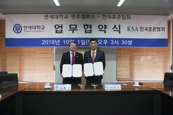 [대학저널 최진 기자] 연세대학교 원주캠퍼스와 한국표준협회(회장 이상진)가 1일 연세대 원주캠퍼스에서 업무 협약을 체결했다.