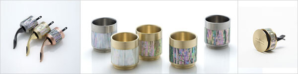 김현주 교수는 ‘바다의 빛’을 주제로 와인 스토퍼, 잔, 차량용 방향제 등 일상생활에서 흔히 보는 생활용품에 자개를 입힌 작품을 출품했다. 오색영롱한 천연 빛으로 사람의 마음을 사로잡는 자개를 현대인이 사용하는 일상도구로 특화한 공예품들이다.