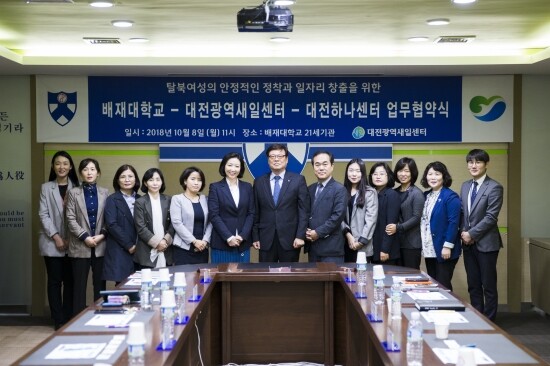 [대학저널 오혜민 기자] 배재대학교(총장 김영호)가 탈북여성의 취‧창업을 돕는다. 배재대와 대전하나센터(센터장 배영길), 대전광역새일센터(센터장 김정현 교수)는 8일 배재21세기관에서 ‘탈북여성의 안정적인 정착과 일자리 창출을 위한 업무협약식’을 열었다.
