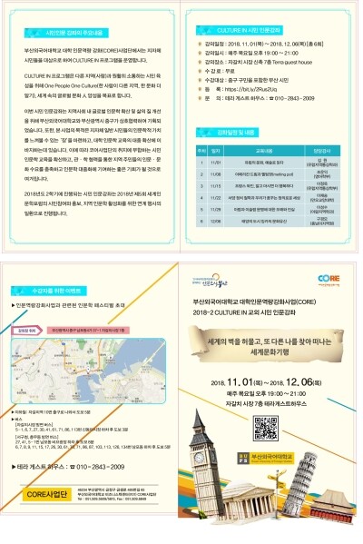 강좌 신청은 부산외대 코어사업단으로 전화(051-509-5609)하면 된다.