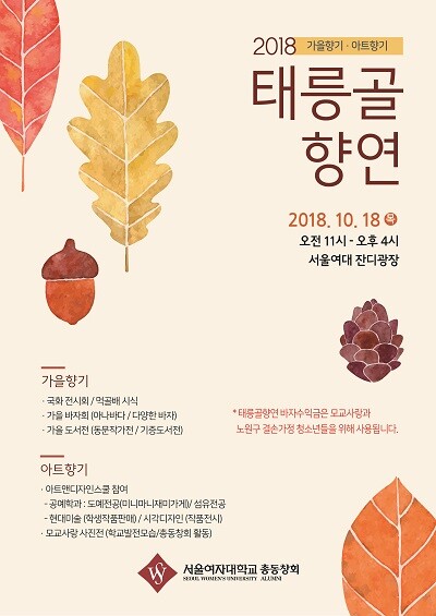 [대학저널 임지연 기자] 서울여자대학교(총장 전혜정) 총동창회(회장 박에스더)가 오는 18일 오전 11시 서울여대 잔디광장에서 ‘2018 태릉골향연’을 개최한다.