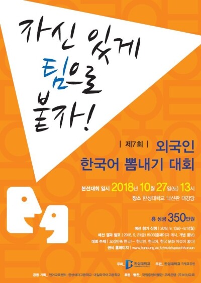 [대학저널 오혜민 기자] 한성대학교(총장 이상한)는 오는 27일 오후 1시 한성대 낙산관 대강당에서 ‘제7회 외국인 한국어 뽐내기 대회’를 개최한다.