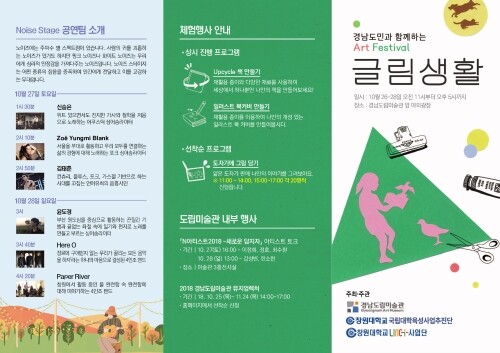 창원대(국립대학육성사업추진단)와 LINC플러스사업단, 경남도립미술관이 공동으로 주관하는 이번 아트페스티벌은 '글림생활'(글림=글+그림)이라는 주제로 지역민들이 쉽게 접할 수 없었던 글·그림, 음악을 모티브로 한 북아트 및 공연 등 다양한 볼거리를 제공할 예정이다.