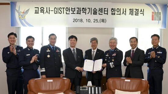 [대학저널 오혜민 기자] GIST(지스트, 총장 문승현) 안보과학기술센터(센터장 석희용, 물리·광과학과 교수)는 지난 25일 경남 사천시에 위치한 제3훈련비행단에서 공군교육사령부와 GIST의 미래국방기술(전자전, 레이저, 인공지능, VR/AR 등)을 공군 교육훈련체계에 적용하기 위한 교류협력 합의서를 체결했다.