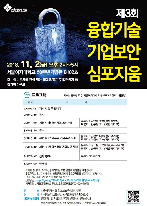 심포지움에서는 서울여대 노용환 기획처장과 한국인터넷진흥원(KISA) 이완석 정보보호산업본부장이 참석해 축사할 예정이다.
