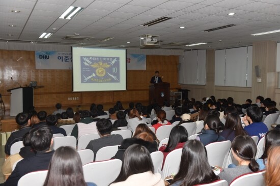 [대학저널 오혜민 기자] 대구한의대학교(총장 변창훈)는 지난 1일 오후 바이오센터 강당에서 재학생 200여 명이 참석한 가운데 이준섭 대구지방경찰청장을 초청해 ‘경찰과 함께하는 법치’라는 주제로 특강을 실시했다.