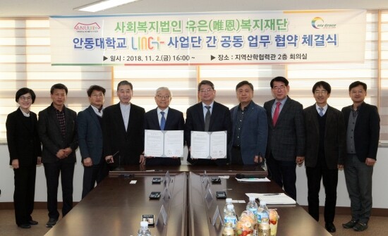 이날 협약식에는 권순태 안동대 LINC+사업단장을 비롯한 이종만 유은복지재단이사장과 직원 등 10여 명이 참석했다.
