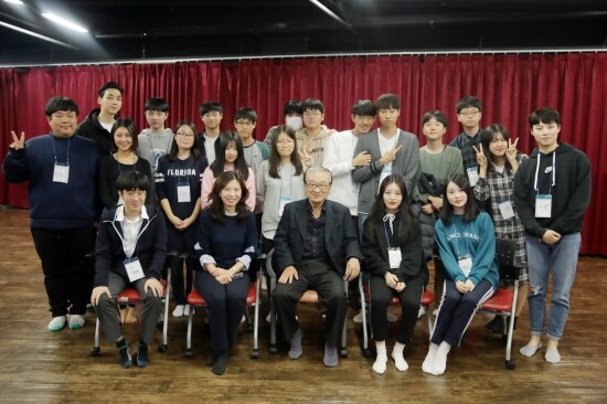 지난달 가천대 연기예술학과 연기강의실, 교복을 입고 방문한 학생들의 눈빛이 호기심으로 가득 찼다. 이들은 동아리 테마학습의 날을 맞아 가천대를 찾았다. 가천대는 이날 학교를 찾은 학생들에게 연기예술학과의 실제수업을 참관하게하고 연기학 강의 및 실습을 진행했다. 학부생 강의를 하던 연기예술학과 이순재 석좌교수(배우)가 이들을 찾아 학생들에게 연기에 관한 깜짝특강을 했다.