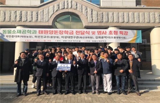 이번 행사를 총괄 주관한 김일석 학과장은 “동물소재공학과는 기부자의 숭고한 의미를 충실히 잘 수행하고 재원의 효율적 운용을 통해 장학금이 인재 육성에 쓰일 수 있도록 최선을 다하겠다”며 “매년 선배 초청 특강행사와 간담회를 열어 재학생들에게 자신감을 높이고 진로나 취업 등에 대한 성공경험을 나눌 수 있도록 힘쓰겠다”고 전했다.