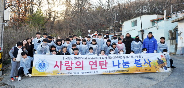 [대학저널 임지연 기자] 인천대학교(총장 조동성)는 11월 30일 인천시 미추홀구 학익동 일대에서 지역이웃을 위한 ‘사랑의 연탄나눔’ 봉사활동을 실시했다.