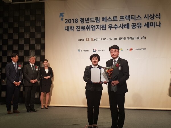 배재대 대학일자리본부(본부장 이채현)는 5일 고용노동부와 한국고용정보원, 동아일보가 5일 서울 엘타워에서 개최한 ‘2018 청년드림 베스트 프랙티스’ 해외취업 부문에 선정됐다.