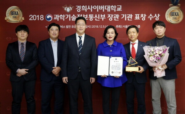 경희사이버대는 부정행위 방지를 위해 화상회의 시스템을 기반으로 실시간 시험 감독 시스템 구축 운영, 정보통신기술 활용으로 새로운 교육 서비스 시스템 구축 및 실행으로 정보통신 서비스 발전에 기여한 점을 인정받아 ‘과학기술정보통신부 장관 표창’을 수상했다.