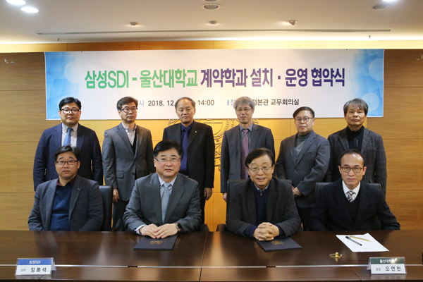[대학저널 김등대 기자] 울산대학교(총장 오연천)와 삼성SDI(대표이사 전영현)가 6일 울산대 교무회의실에서 산업체 직원의 재교육과 직무능력 향상을 위한 계약학과 설치·운영 공동협약을 체결했다.
