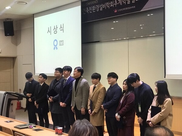 송한솔(지도교수 류종관) 씨는 지난 11월 15일부터 11월 16일까지 이틀 동안 인하대에서 열린 2018 한국건축친환경설비학회 추계학술발표대회에서 ‘천장 내부 흡음재의 바닥충격음 저감 효과’라는 논문을 발표해 우수논문발표상을 받았다.