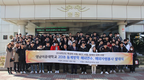 [대학저널 신영경 기자] 영남이공대학교(총장 박재훈)는 10일 대학본관 1층 광장에서 2018년 동계방학 해외 연수단 발대식을 진행했다.