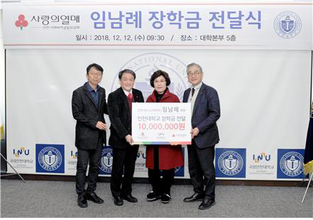 임남례 대표는 어려운 가정형편의 학생들이 충실히 학업을 이어나가기를 바란다고 말했다. 인천대는 기부자의 요청에 따라 가정형편이 어려운 저소득층 학생들이 학업에 전념해 우수인재로 거듭날 수 있도록 장학금을 지원할 것을 약속했다.