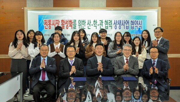 [대학저널 임지연 기자] 인천광역시(시장 박남춘)와 인천대학교(총장 조동성), (사)인천상인연합회가 20일 인천대 교수회의실에서 「전통시장 활성화를 위한 2018년 산·학·관」 상생협력 협약식을 체결했다. 이날 협약식에는 인천시 이상범 일자리경제본부장, 인천대 손양훈 글로벌법정경대학 학장, (사)인천상인연합회 이덕재 회장이 참석했다.