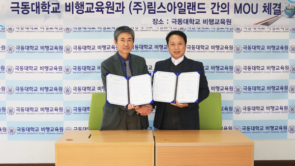 [대학저널 김등대 기자] 극동대학교 비행교육원(원장 허신열)은 ㈜림스아일랜드(대표 임성용)와 지난 3일 산학협력을 위한 업무협약(MOU)을 체결했다.
