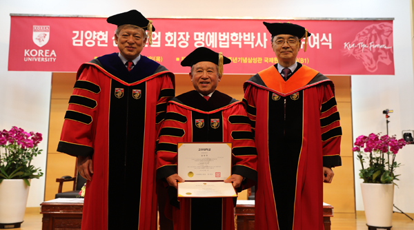 [대학저널 김등대 기자] 고려대학교(총장 염재호)가 24일 고려대 백주년기념삼성관 국제원격회의실에서 김양현 삼원산업 회장에게 명예 법학박사 학위를 수여했다.