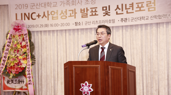 [대학저널 김등대 기자] 군산대학교(총장 곽병선)가 지난 29일 군산 리츠프라자호텔에서 '2018 가족회사 초청 LINC+사업 성과발표회 및 신년포럼'을 개최했다.