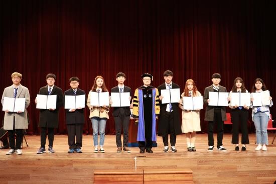 이날 열린 2019학년도 입학식은 입학허가선언을 시작으로 입학생 대표의 입학 선서, 시상 및 장학증서 수여, 환영사 및 축사, 교수-학생 선서, 학생 응원단 D.ONE의 공연 등 순으로 진행됐다.