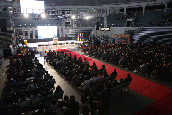 [대학저널 신영경 기자] 동국대학교는 22일 장충체육관에서 2019학년도 입학식 및 신입생 환영식을 개최했다. 입학식에는 신입생 3101명과 한태식 총장을 비롯해 교수 및 직원, 학부모 등이 함께했다.
