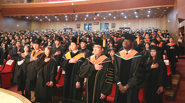 이날 학위수여식에서는 박사 18명, 석사 173명, 학사 2213명 등 2404명이 학위를 받았다.