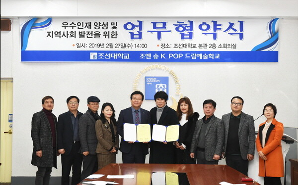 [대학저널 임지연 기자] 조선대학교가 27일 조선대 본관 2층 소회의실에서 조엔슈 K-POP드림예술학교와 지역문화예술 발전과 아시아 청소년 문화예술교육을 위한 협약을 체결했다.