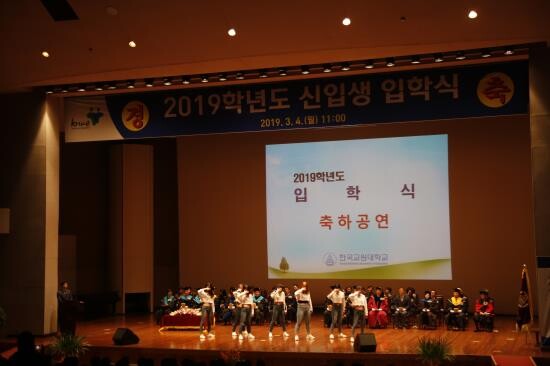 입학식은 개식, 국민의례, 학사보고, 입학선서 등 순서로 진행됐으며 학생동아리 ‘K그루브, 춤예술연구동아리(D&D)’의 공연으로 신입생의 축하 분위기를 고조시켰다.