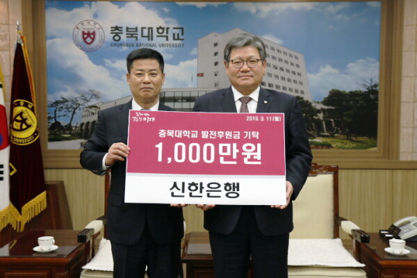 [대학저널 임지연 기자] 신한은행이 11일 지역의 인재 양성을 위해 힘써달라며 충북대학교(총장 김수갑)에 장학기금 1000만 원을 기탁했다.