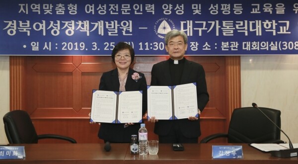 대구가톨릭대학교(총장 김정우)는 25일 경북여성정책개발원과 업무협약을 체결하고, 경북지역 양성평등정책 및 일자리 발굴과 전문인력양성에 긴밀히 협력하기로 했다.