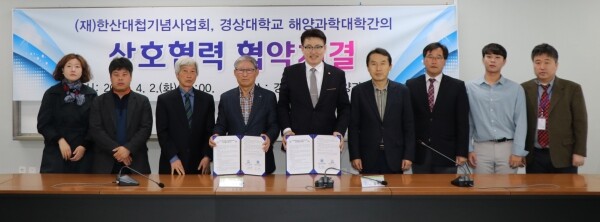 이날 상호협력 협약 체결식에는 경상대 해양과학대학 김무찬 학장, 한산대첩기념사업회 정동배 이사장 등이 참석했다.