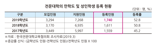 성인학습자 수도 증가…전문대 평생직업교육기관 역할 수행