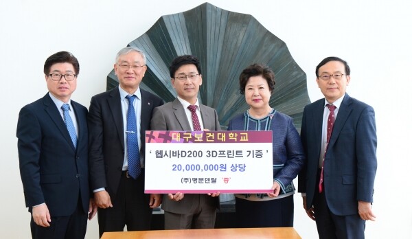[대학저널 임지연 기자] 대구보건대학교(총장 남성희)가 ㈜명문덴탈로부터 고가의 디지털 치과기공 실습 장비를 기증 받았다. ㈜명문덴탈이 기증한 장비는 2000만 원 상당의 헵시바D200 3D프린트다.