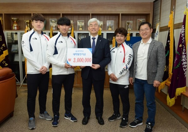 [대학저널 신효송 기자] 동의대학교(총장 공순진) 출신 국가대표 선수들이 후배들과 학교를 위해 뜻깊은 발전기금을 기탁했다.