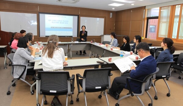 발제를 맡은 사회과학대학 사회학과 이혜숙 교수는 한국 여성의 현황과 정부의 대학 성평등 정책의 흐름을 검토하고, 대학사회 성평등 실천과 여성연대의 필요성을 제기하면서 여교수회의 활성화 방안으로 ‘여교수 역량강화 프로그램 지원과 교육, 대학 관련 성평등 이슈의 공론화와 성평등 실천, 정보교환과 네크워크의 중요성’ 등을 제시했다.