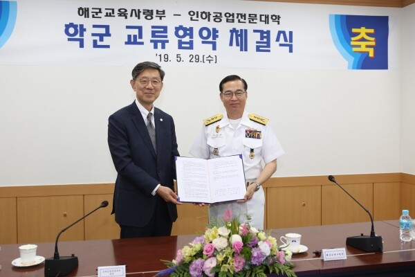 [대학저널 오혜민 기자] 인하공업전문대학(총장 진인주)은 지난 29일 해군교육사령부(사령관 중장 이성환)와 학군 교육협약을 체결했다. 학군 교류협약은 현 정부가 지난해 7월 발표한 ‘국방개혁 2.0’의 핵심 과제인 부사관 정예화 기반을 마련하는데 그 목적이 있다.